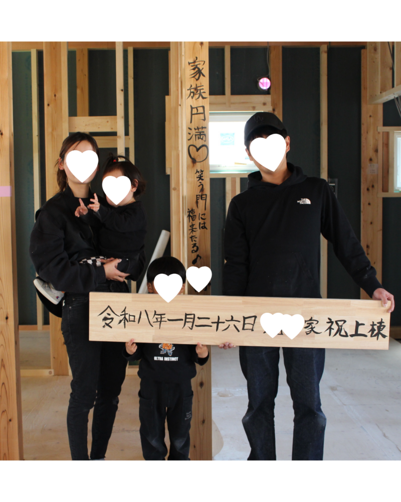 まだ木の香りが漂う建築中の室内で、ご家族が筆を手に取り、未来の我が家へ想いを刻む……。そんな、とても優しくて誇らしいひとときをご紹介します。
